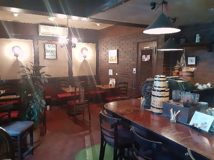 「こんにちは」扉を開けてお店に入るとカウンター席、テーブル席とあり昭和の落ち着いた雰囲気。