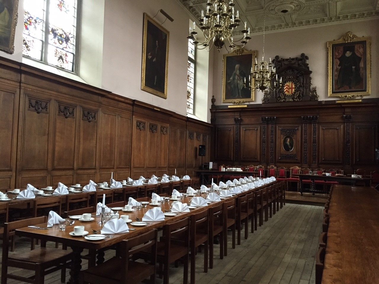 ケンブリッジ大学の歴史は古く、中世の1209年に遡ります。その成り立ちは街の人々と対立したオックスフォード大学の一部の人々が、ケンブリッジに逃げて研究・教育を始めたのに端を発しています。ケンブリッジを訪れる人によく聞かれるのが、「ケンブリッジ大学はどこにあるの?」という質問です。実はアメリカや日本の大学組織のように、ケンブリッジ大学というまとまったキャンパスは存在しません。ケンブリッジという街の中に、それぞれの学部に所属する建物と、31のカレッジに所属する土地が点在している形です。カレッジというのは、簡単に言うとハリー・ポッターに出てくる「グリフィンドール」「ハッフルパフ」等の寮のようなもので、ケンブリッジの全ての学生や研究者たちはケンブリッジ大学に所属しながらも、同時に必ずいずれかのカレッジに所属しています。カレッジは専門の学部以外のもう一つのコミュニティとなっており、異なる学部の人たちと寝食を共にしたり、スポーツ・イベントに参加したり、また卒業後は就職のためのネットワークとなったりします。カレッジの中でも特別とされるのが、トリニティ・カレッジとキングス・カレッジで、広大な敷地に美しい歴史的建造物を有しており、観光客が沢山訪れます。私が修士号をとったクラスには150名程度の生徒がいましたが、トリニティやキングスに所属している人は誰もいませんでした。入るには相当特別なコネクションが必要なようです。(ちなみにニュートンやチャールズ国王はトリニティ・カレッジ出身、経済学者のケインズはキングス・カレッジ出身です)これらの有力カレッジは莫大な土地を保有していて、そこから生みだされるとんでもない財力も有しています。セント・ジョンズ・カレッジも前述の2つのカレッジと匹敵するほど倍率が高いようですが、こちらに所属する人はクラス内に数人いましたし、日本人もいたので、比較的オープンなカレッジなのかもしれません。ちなみに全てのカレッジはハリー・ポッタ―の映画で見られるような長いテーブルが置かれたダイニング・ルームを有しており、学期中には週に何度か、正装またはガウンを着て「フォーマル・ディナー」と呼ばれる伝統的なディナーを行っています。(食事自体の値段は安く、カレッジに所属する人の招待があれば外部の人も参加できます)メニューが特別なわけではないのですが、キャンドルに照らされた歴史あるダイニングホールでガウンを着た学生に囲まれて食事をするという、浮世離れした雰囲気が何とも言えません。最古のカレッジはピーターハウス・カレッジで、1284年に創設され、現在も現役のカレッジとなっています。尚、筆者の所属していたカレッジは学部生なし(有力カレッジには必ず学部生がいます)の比較的新しいカレッジだったので、街の中心部の川沿いにあり、こじんまりとしていて可愛らしいですが、残念ながら特に有名な建物はありませんし、ダイニング・ホールは近代的でした。31のカレッジも、ポッシュなものから庶民的なものまで様々なのです。