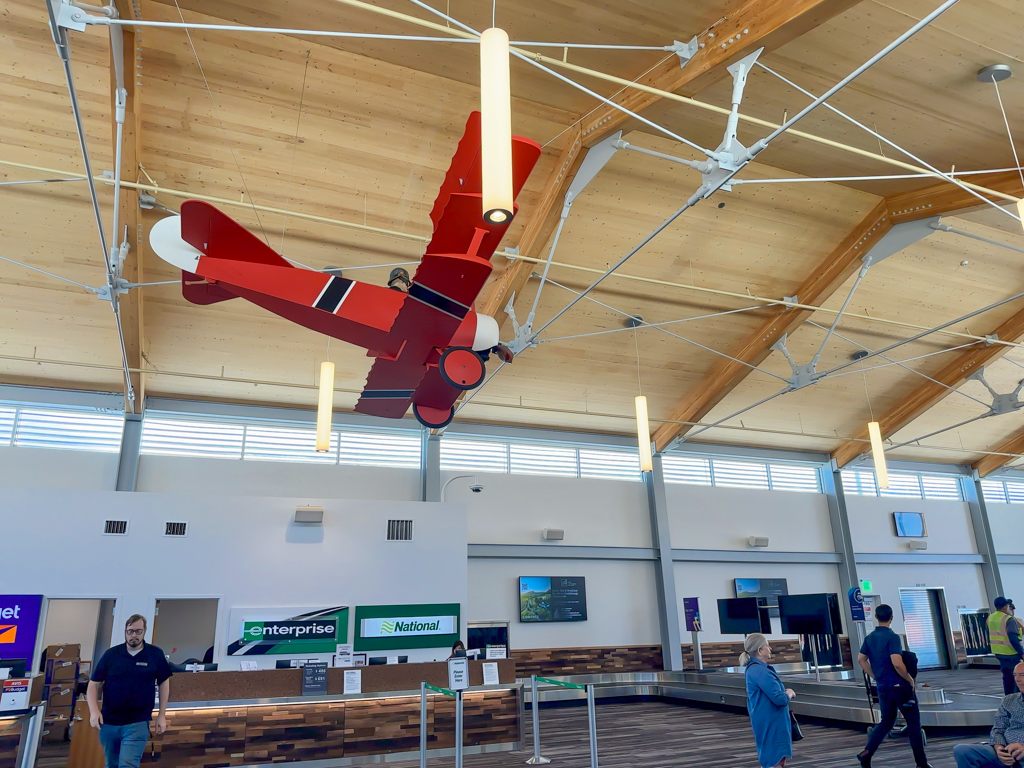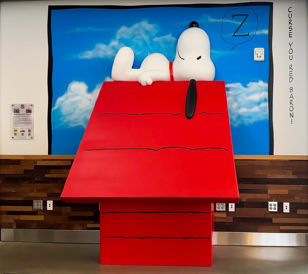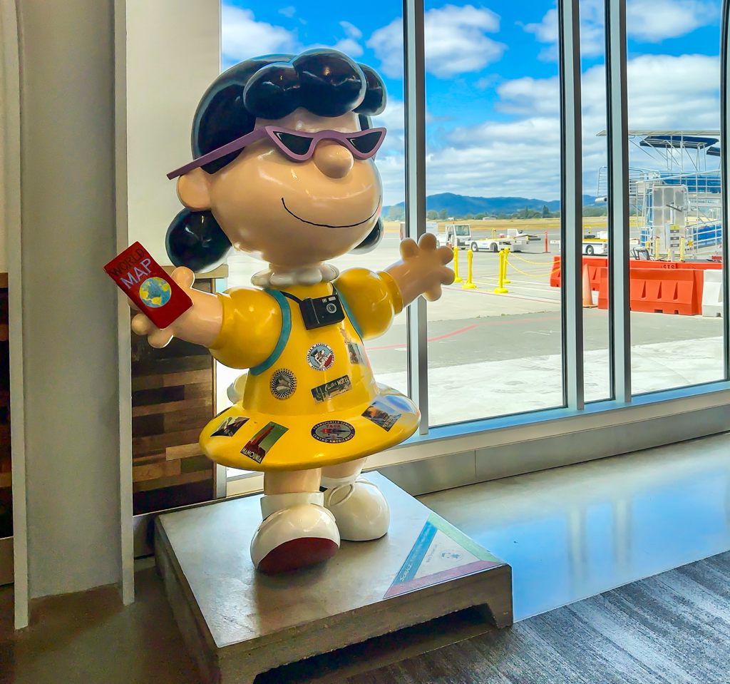 Santa Rosaにある空港は、Chrales M. Schulz Sonoma County Airportと名付けられて、スヌーピーがシンボルとなっています。到着ロビーには、いくつかのフィギュアがあり、だれでも入ることができます。