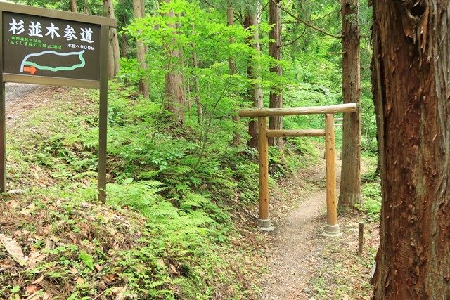 ふくしま緑の百景の一つでもある杉並木の石段を上ります。