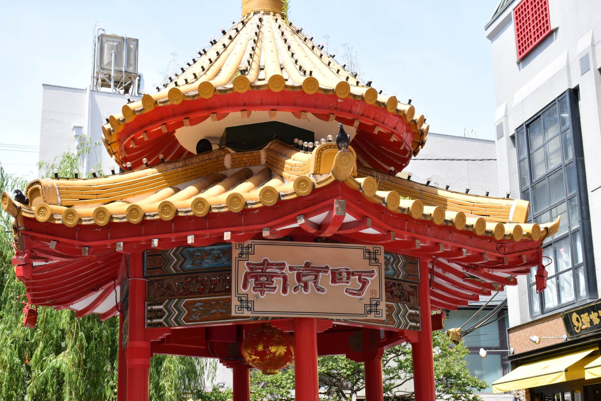 南京町は十字路になっていて、中央の南京町広場にはあずまやがあります。