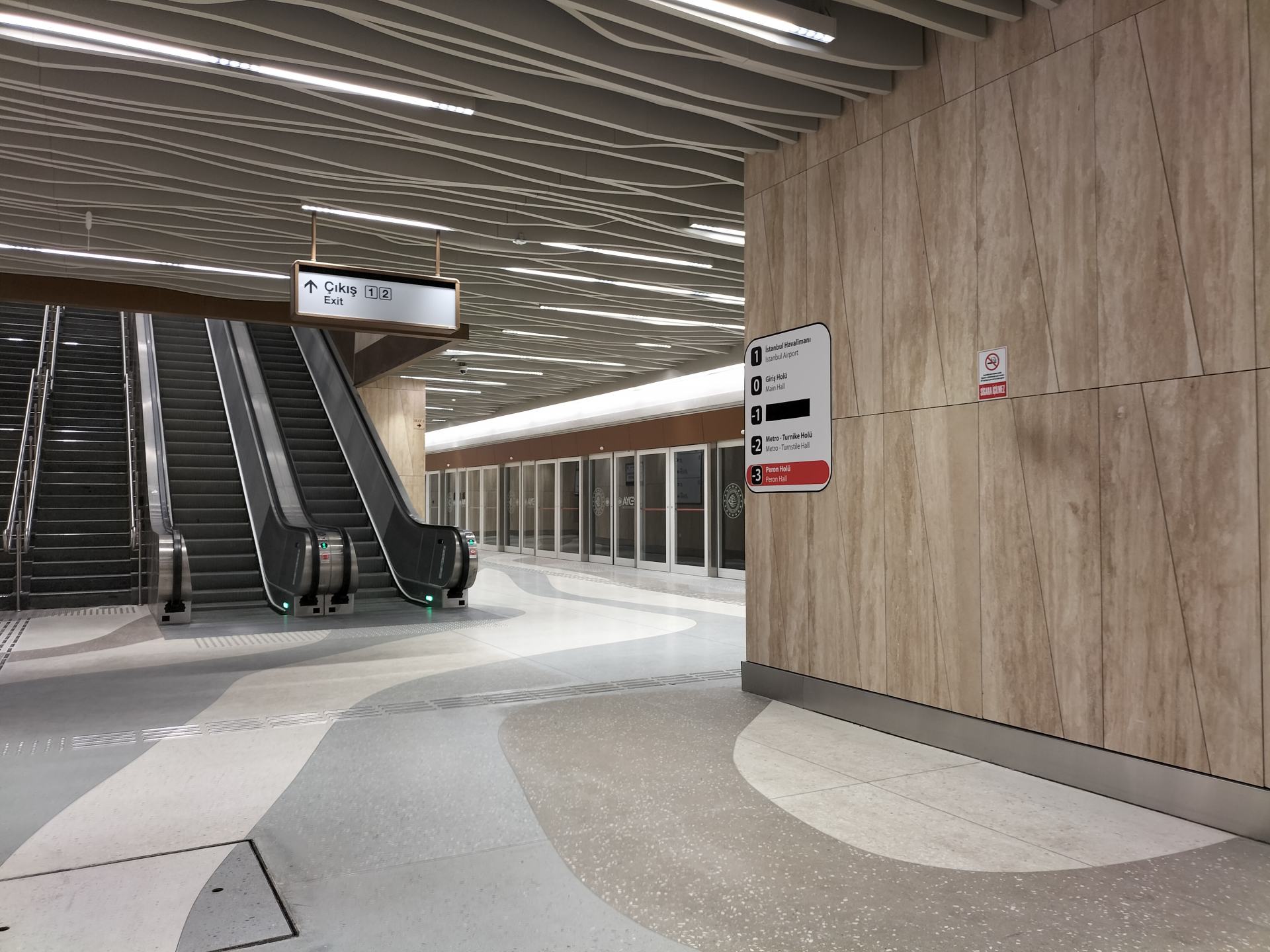 逆方面行きの電車は、現状、次駅の空港施設カーゴ・ターミナル留まりですが、建設が完了したあかつきには更に7駅程に渡り路線が延長されることになります。イスタンブール市内にアクセスする場合はキャウトハーネ (Kâğıthane) 方面に向かう必要があります。