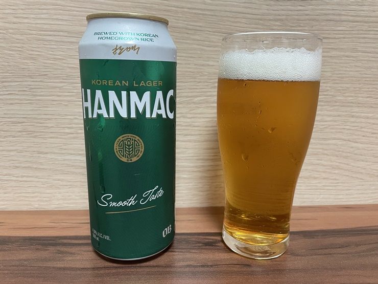 最後は韓国の定番ビール、HANMAC(アルコール 4.6%)。オーストラリア、カナダ、ベルギーの麦芽と韓国の米を使用したラガービールです。こちらも飲みやすく、クリアですが、しっかりとビールの味が感じられます。焼肉と合いそうです。