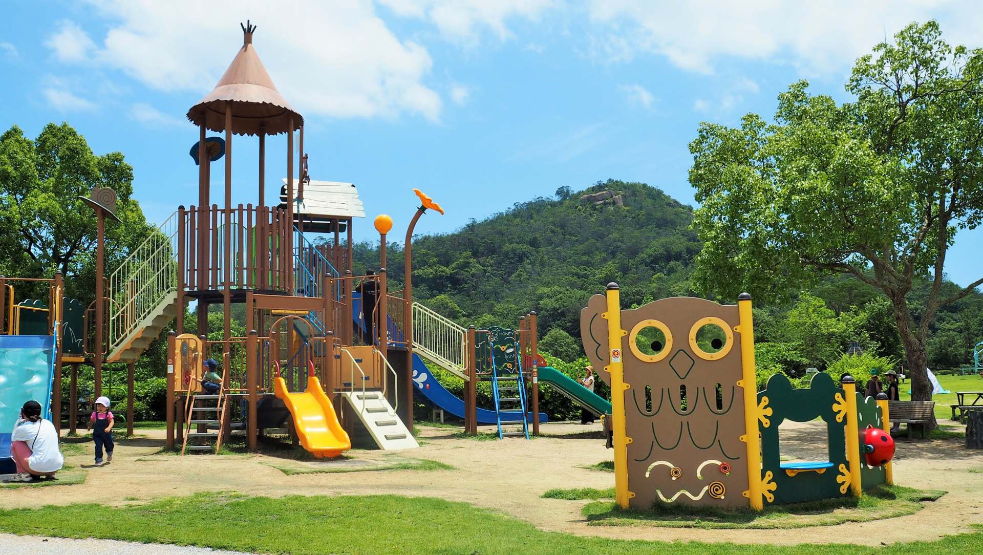 近くには、子供たちに人気の大型遊具のある「わんぱく広場」もあります。