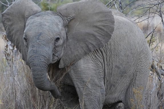 まずはわんぱくな象の子供がサファリカーの近くに遊びに来てくれましたよ。