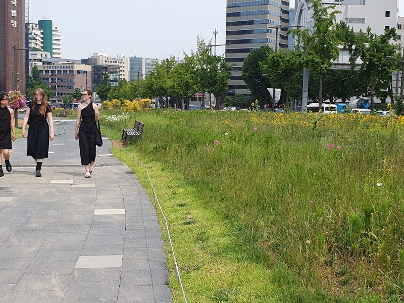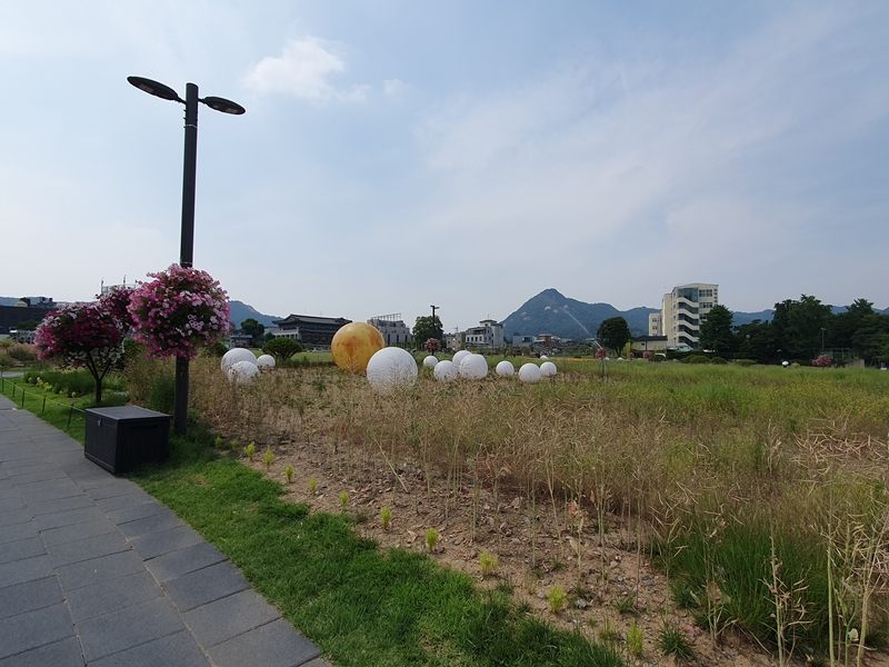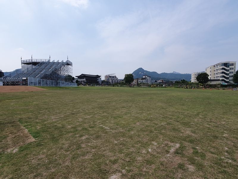 景福宮の正門にあたる光化門を正面に右側に進んだところに、去年の10月から 広い広場が公開されています。その名も、松峴緑地広場です。