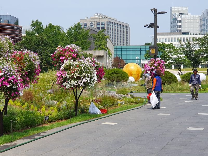 都心とは思えない3万6642㎡規模の広場で、遠くには北岳山や北漢山も見えます。
