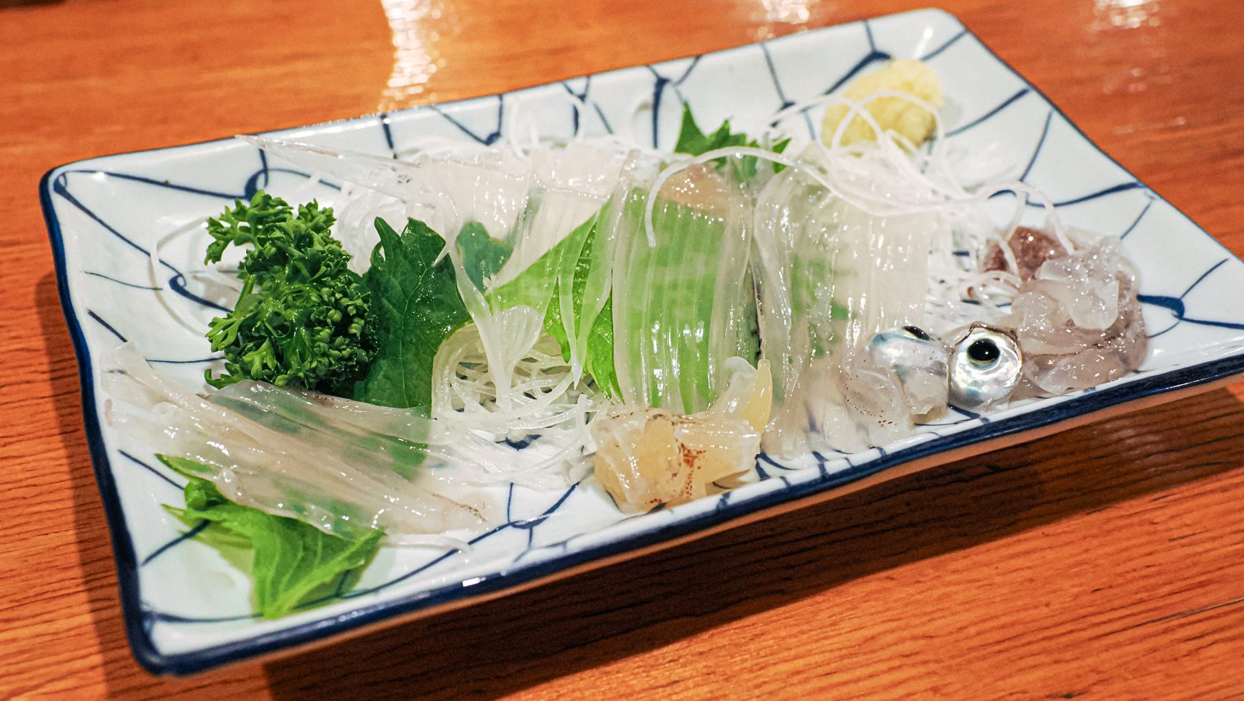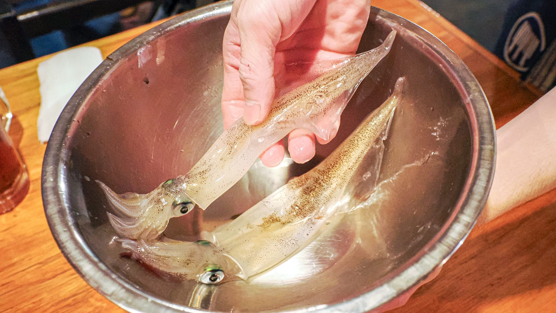 透明なイカの色で一目瞭然の鮮度はもちろんですが、イカの部位によって異なる触感も楽しめます。