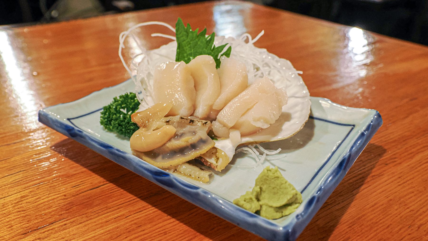コリっとした歯ごたえがたまらない、磯の香りもたっぷりのお刺身です。