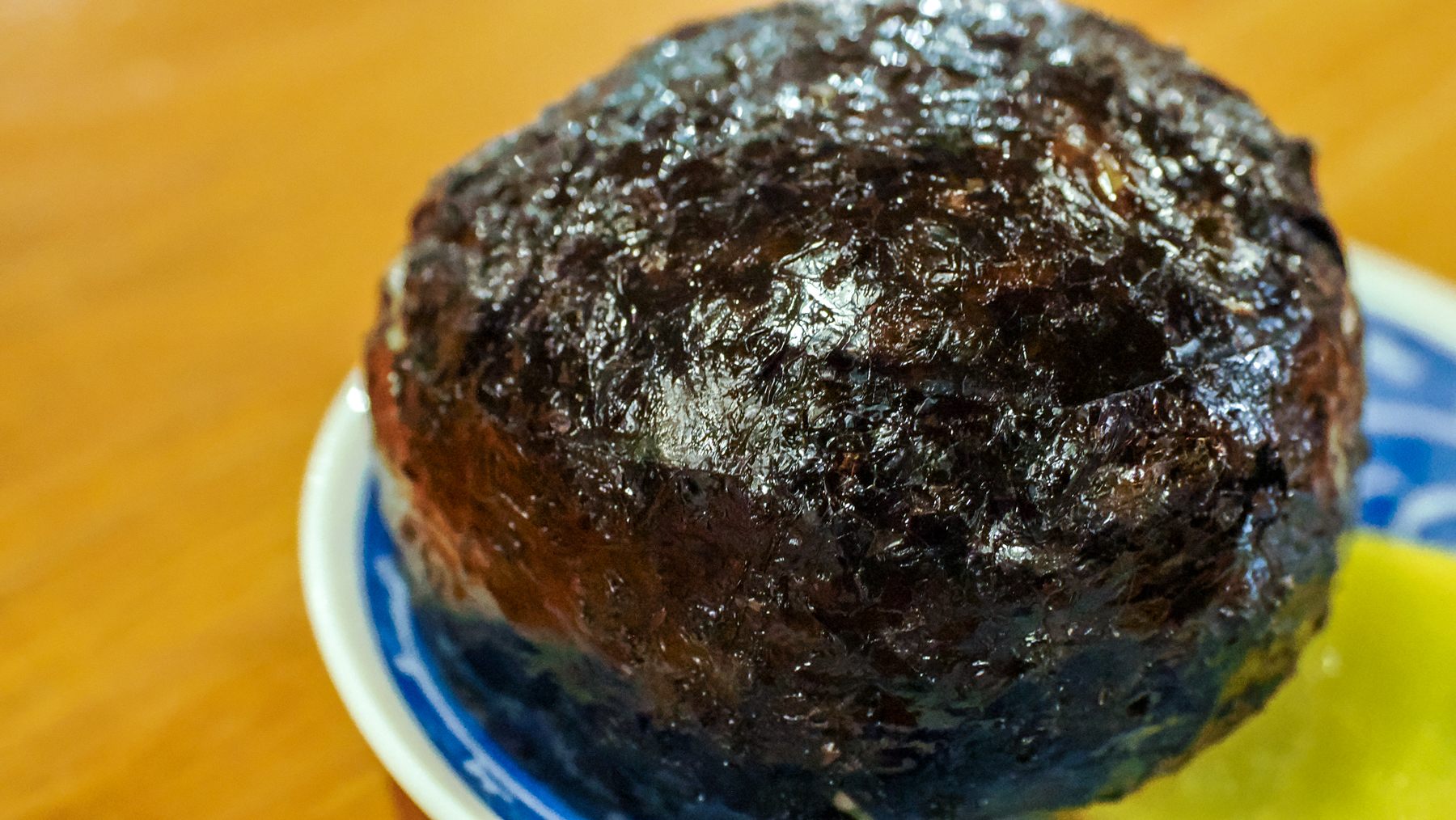 岩のり特有の光沢がある紫がかった色と、まんまるなおにぎりの大きさにも感動。