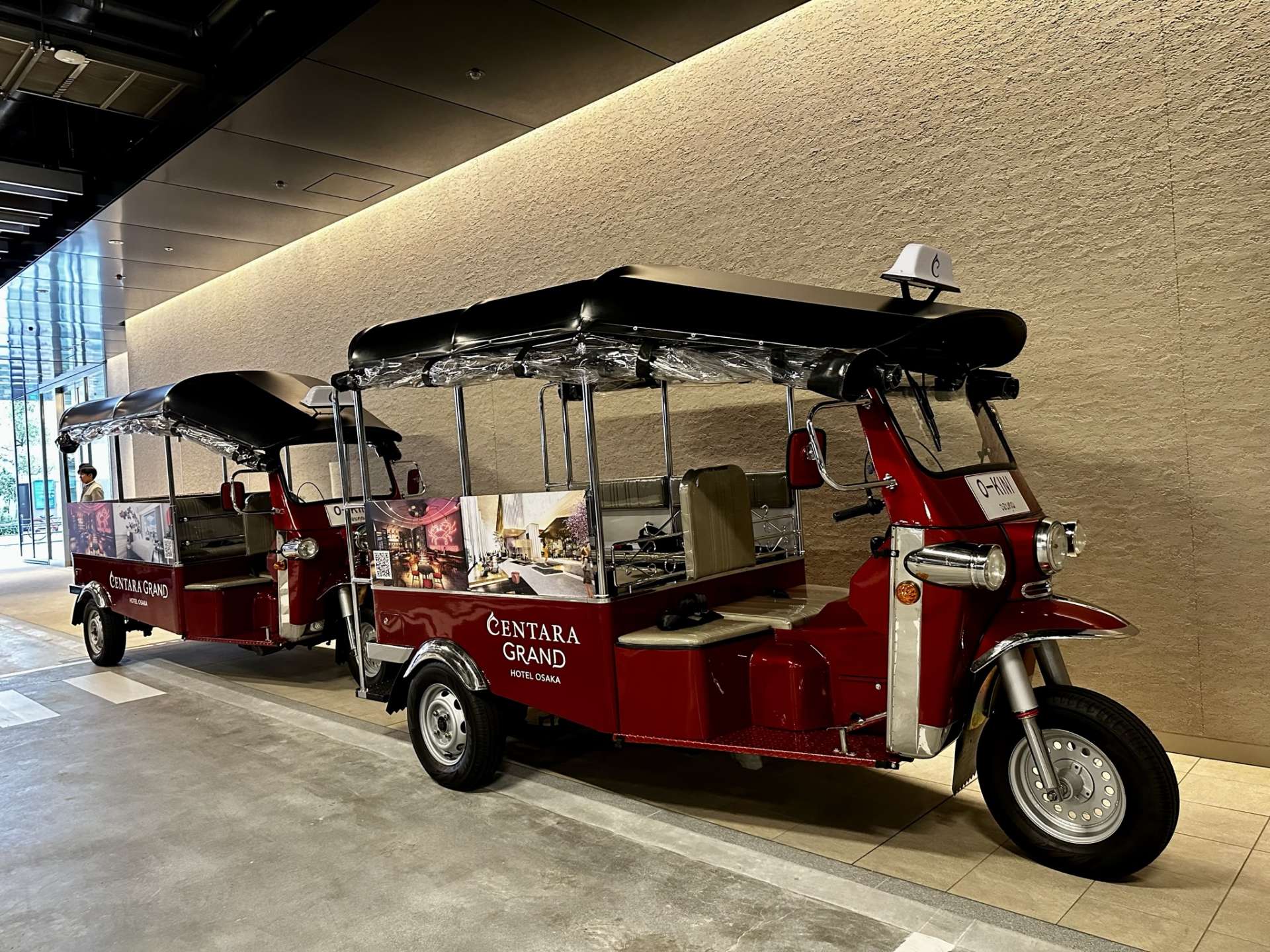 宿泊者が希望すれば、難波周辺を周回してくれるホテル専用のトゥクトゥクです。宿泊して一度乗ってみたいですね。