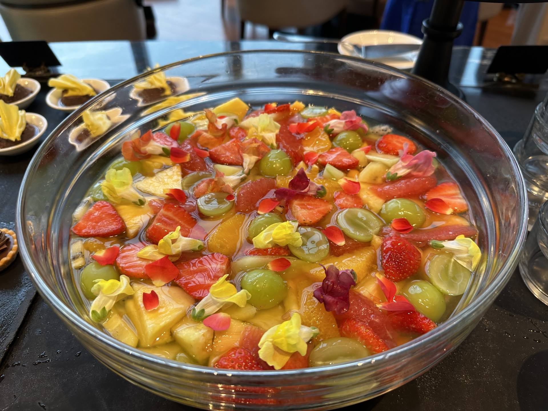 華やかなイタリア風フルーツポンチでフレッシュフルーツがとても美味しそう。