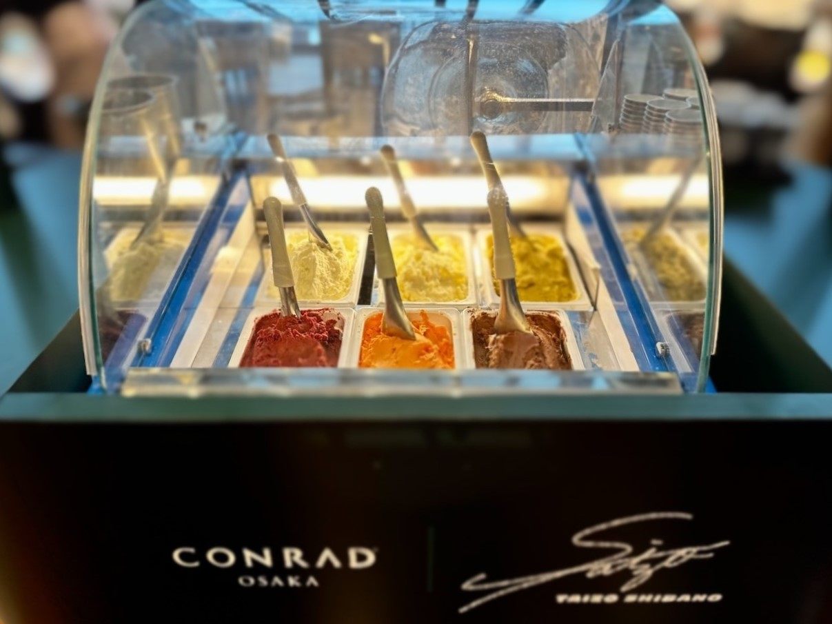 この機会に、世界一のジェラートをコンラッド大阪のスイーツビュッフェでお楽しみ下さい。
