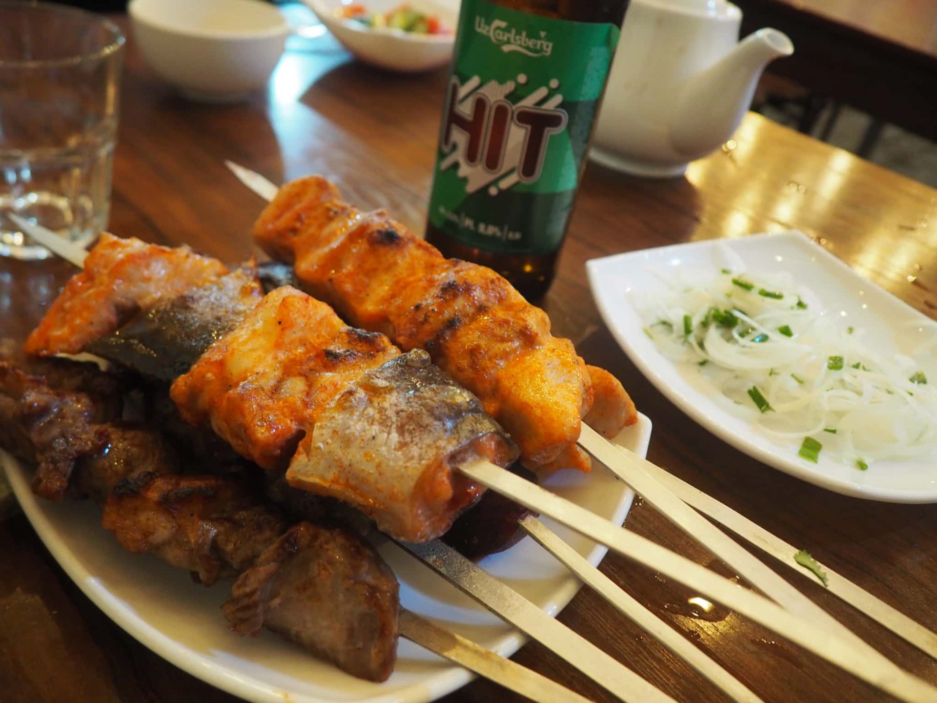 そしてお会計も自己申告。言葉が通じそうにない場合は、注文したものを写真に撮っておくと確実です。シャシリクはだいたい1本17000スム(2023年7月現在のレートで約200円)。この国で度々聞く、ボッタクリや謎の高額サービス料の請求も私の知る限りありません。こんなに値段が安く、外国人に対しても良心的なレストランはこのエリアでそう多くはありません。これこそが私が自信をもってこのお店をおすすめする理由なのです。