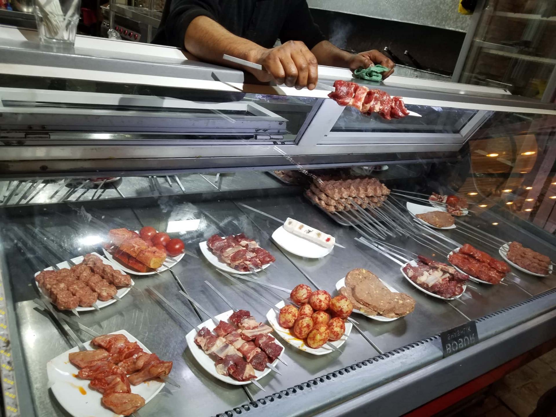 入るとシャシリクがずらりと並ぶショーケースが現れ、その肉肉しさに圧倒されるはず。立地も味も文句なしのこのお店ですがメニューが一切ないのが欠点で、シャシリクはショーケースから指差しで注文し、サラダやナン、飲み物(お酒はビールとウォッカのみ)は口頭で頼みます。ただどの国にもいえることですが、メニューがないお店の方が雰囲気も良く、料理もおいしかったりするんですよね。