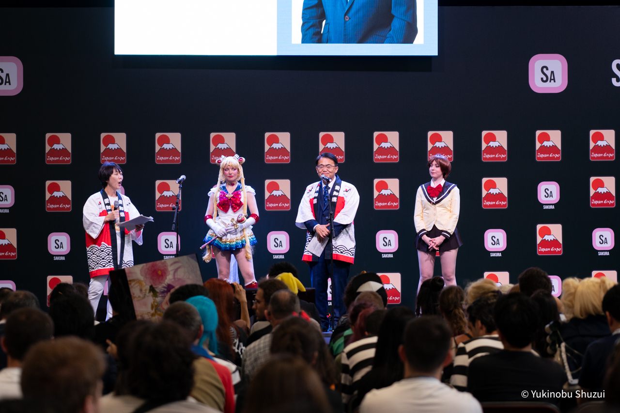 パリ北郊外の見本市会場ノール・ヴィルパントで、7月13日から4日間、日本文化とエンターテインメントを扱ったイベント「ジャパンエキスポ」が行われています。初日には愛知県の大村知事が会場を訪れ、ステージで愛知県のアピールを行いました。