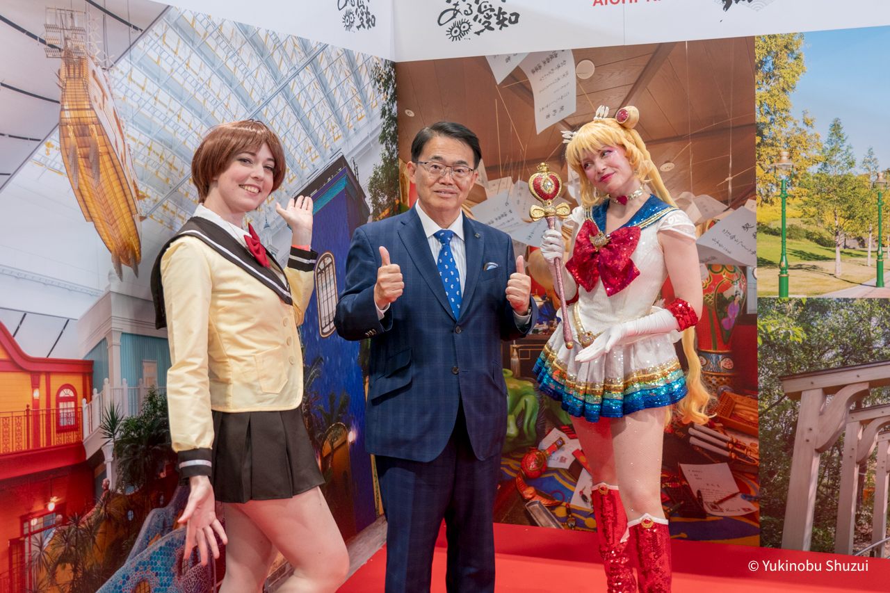 また愛知県のブースでは、毎年名古屋市で開かれている「世界コスプレサミット」で、2017年にフランス代表チームの一員だったアルオタさんと、2022年に優勝したフランス代表チームのハザリエルさんが参加。「美少女戦士セーラームーン」の姿で来場者との写真撮影に応じました。