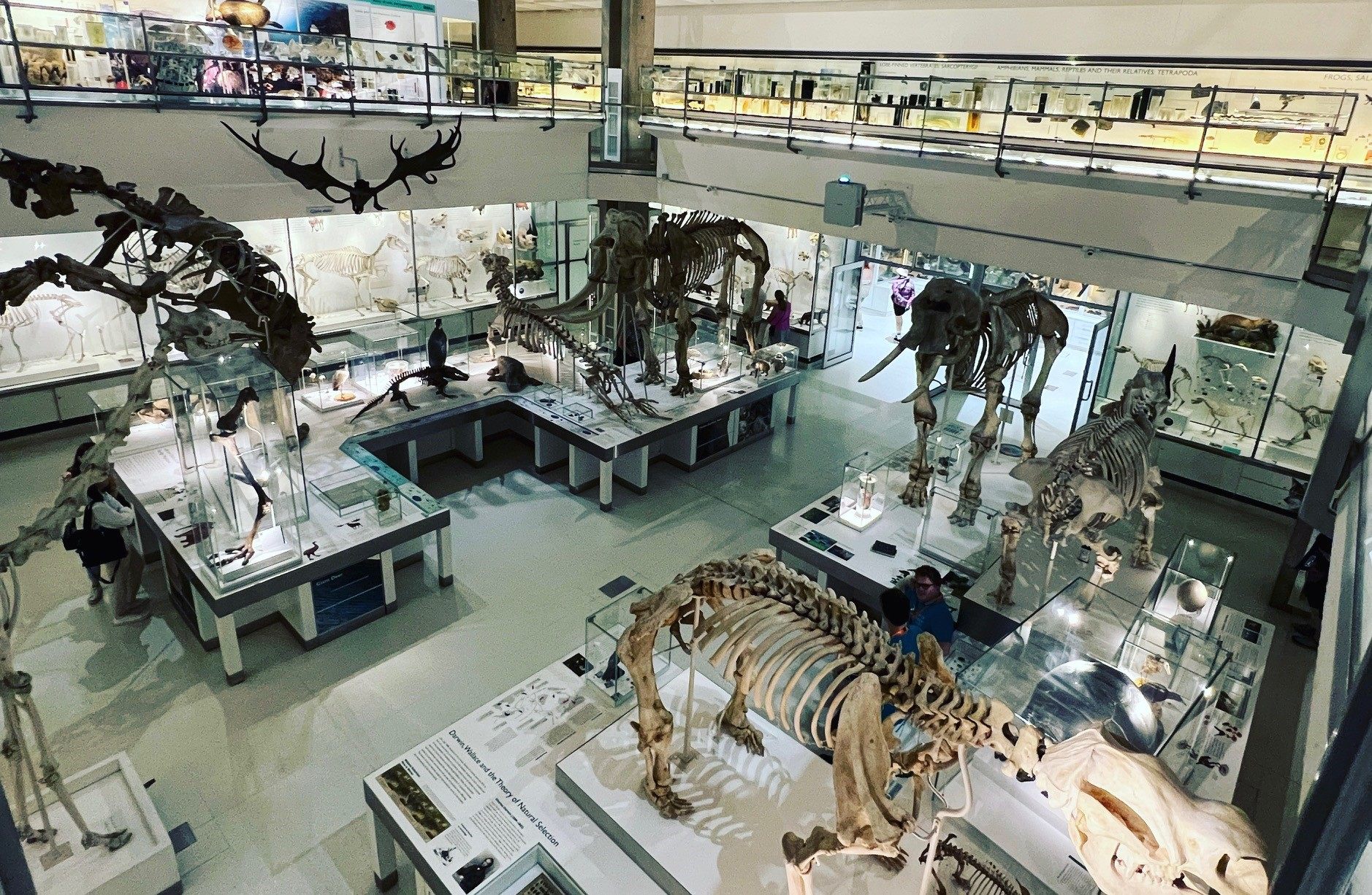 さて、マニアックなおすすめスポット、ラストを飾るのは「University Museum of Zoology (動物学博物館)」です。ケンブリッジ大学・動物学部の一部で、こちらも入場は無料。哺乳類、鳥類、爬虫類、昆虫、軟体動物とあらゆる動物の骨格標本や剥製が展示されています。なんとチャールズ・ダーウィンその人が発見した標本もあるのだそうです。前述の考古学人類学博物館はとてもケンブリッジらしい古い建物に入っていましたが、こちらの博物館は大変近代的な建物です。というのも、2013年から5年間、なんと430万ポンド(現在の為替レートで7.8億円)を使って大改装工事を行ったんだとか。入口を入るとまず圧倒されるのが空を舞う巨大な21メートルのナガスクジラの骨格標本です。また、1680年に絶滅してしまったモーリシャスの鳥、ドードーも必見です。ドードーは捕食者のいない環境で進化したため、ヨーロッパ人の船乗りが連れてきた猫・ネズミ・犬・ブタなどによって瞬く間に狩られ絶滅してしまいました。こちらの博物館には世界に現存する最も完全な骨格標本が展示されています。(何羽かのドードーの骨格をつなげたものだそうです)「不思議の国のアリス」に出てくることからも知名度の高いドードー、てっきりもっと最近絶滅したものだと思っていました。400年以上前に絶滅してしまったのに、今も骨格標本が残されているというのは本当にすごいですよね。知識豊富なスタッフが色々な質問にも答えてくれます。お子さんを連れてくる人が多いみたいですが、大人が行っても十分満喫できます。