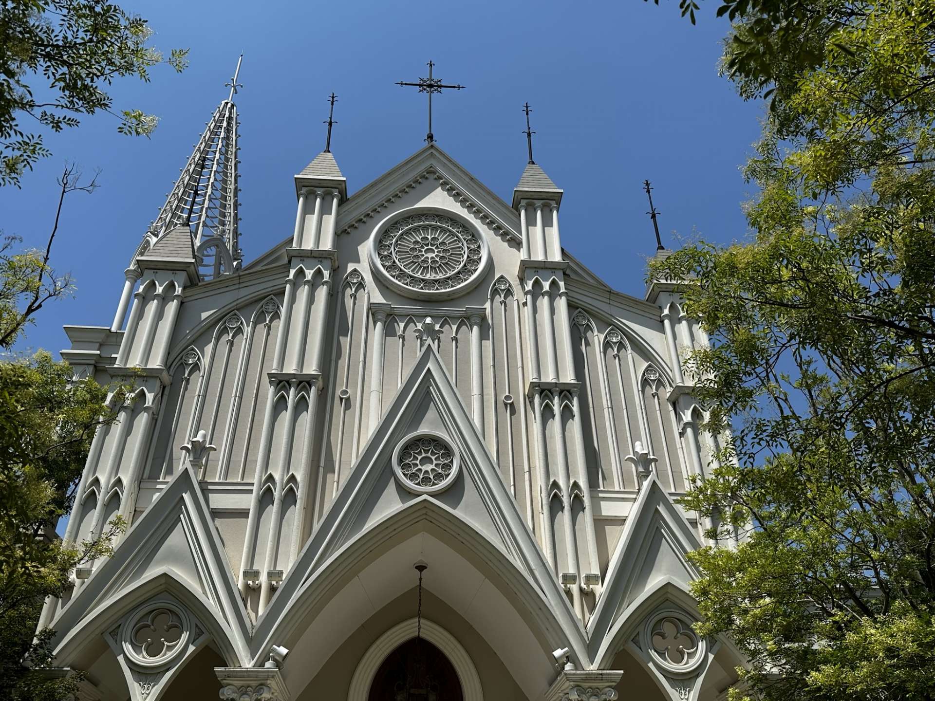 ウェディングでは「おめでとう!」で溢れている、緑に囲まれた白亜の独立型大聖堂。普段は中々入る事のない非日常空間です。