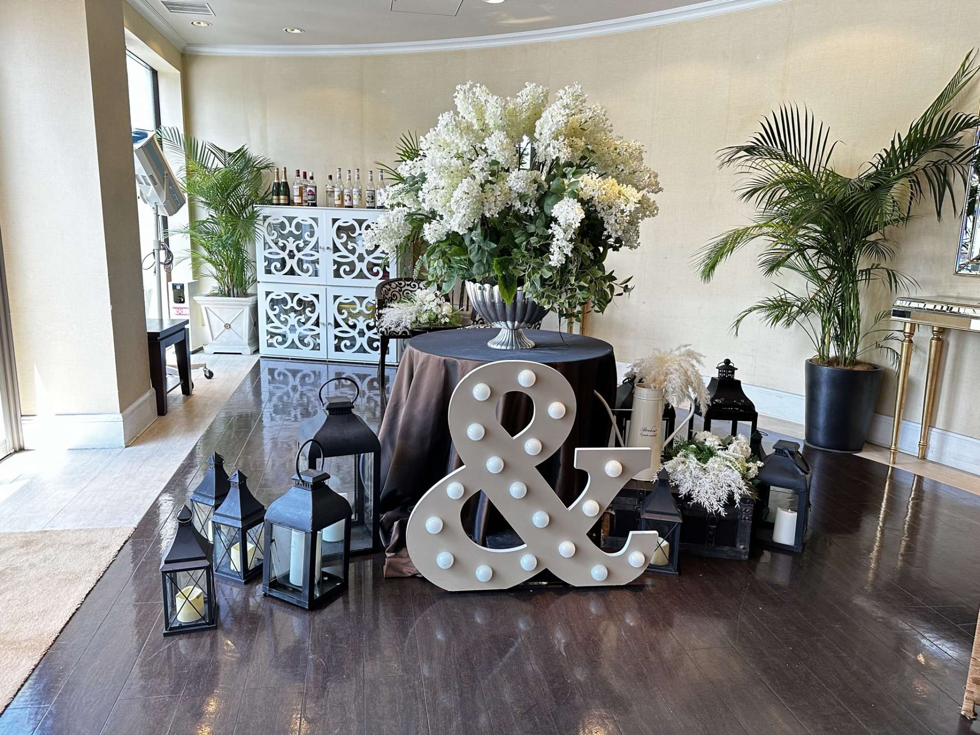 アフタヌーンティーは披露宴会場で行われています。あちらこちらに素敵なフォトスポットがあります。