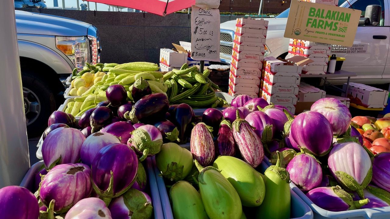 奥にある薄緑色のきゅうりは、甘く柔らかいく水分が少ないので薄くスライスしてきゅうりのサンドイッチに使うといいです。手前のイタリア系ナスは輪切りにしてオリーブオイルつけて焼いちゃいましょう。カレーライスの上にこのナスあるだけで夏野菜カレー完成!