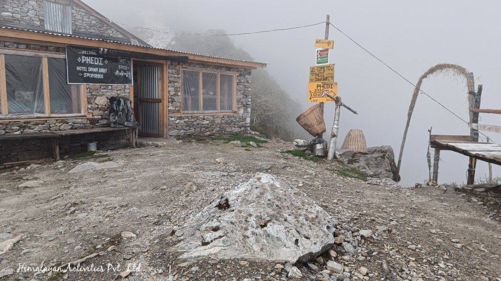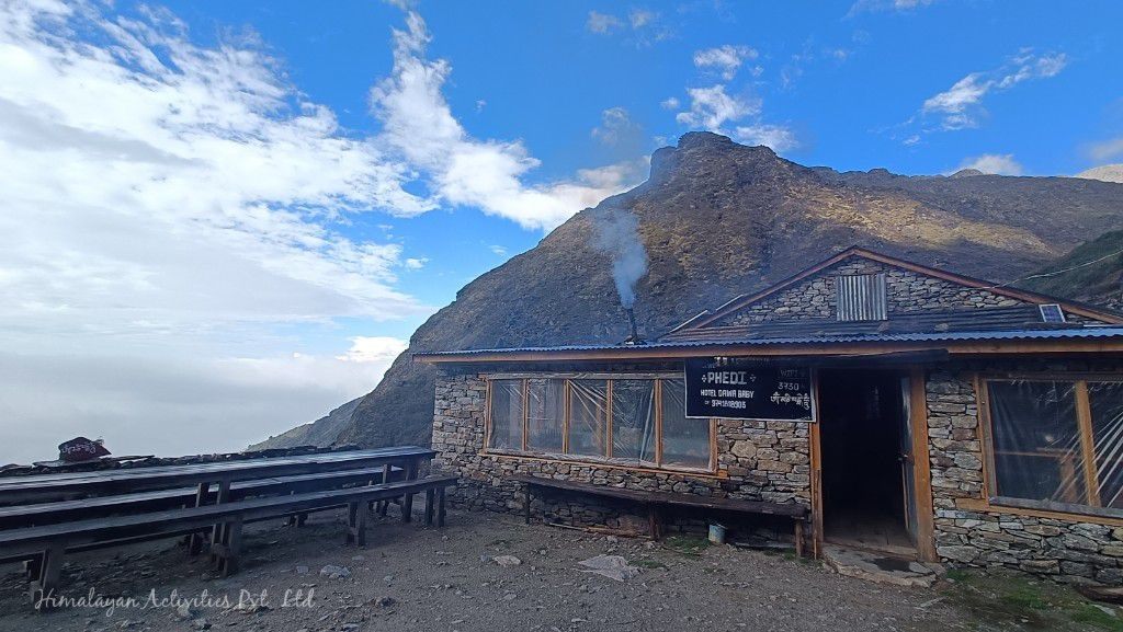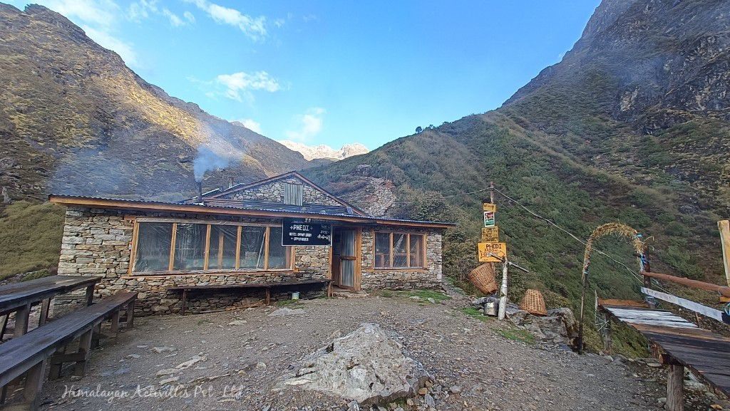 通常のトレッキングでは休憩程度で利用し、通過してしまうことの多い場所ですが、私たちはこの日朝7時にシンゴンパを出発、ゴサイクンドを経てここまで10時間ほど歩いており、すでに17時を回っていたので、この日はここに泊まることに。