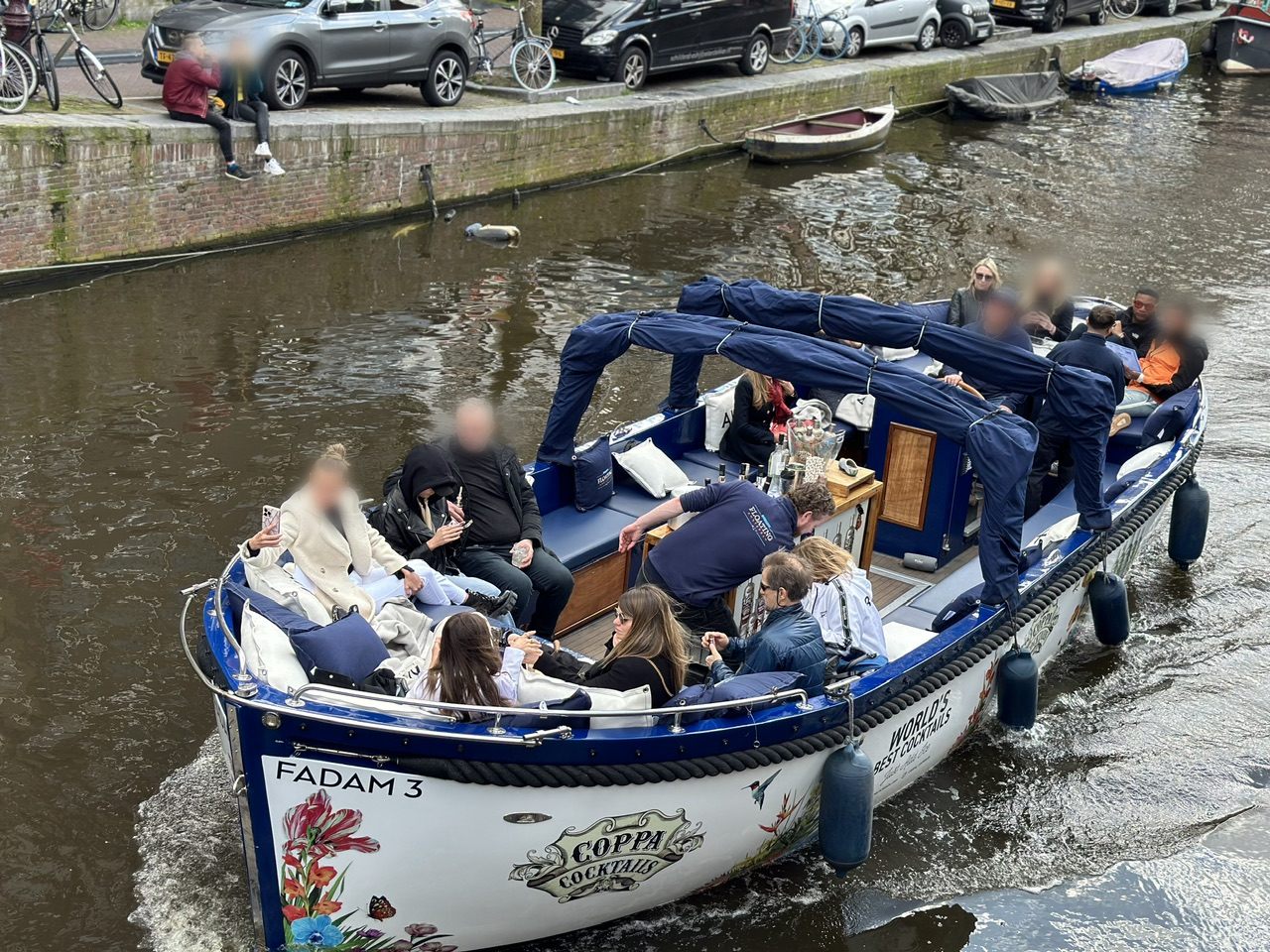 ポルトガル(関連記事)と違って、どこに行っても真っ平な土地ばかりのオランダでは走りやすそうです。運河を遊覧するカナル・ツアーが大人気なようで、観光客を乗せたボートがひっきりなしに通過していきます。