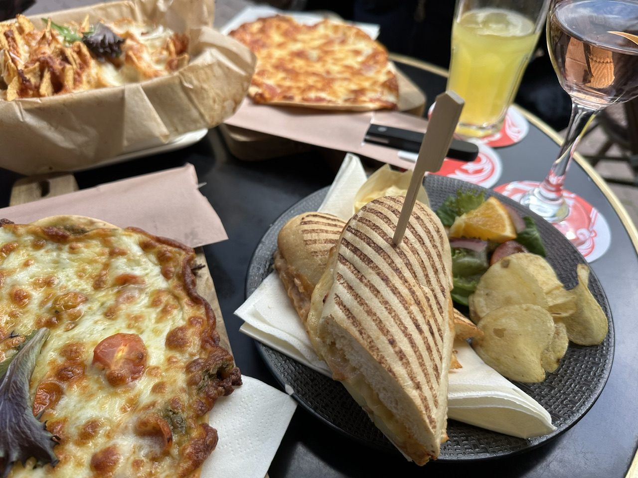 ピザやナチョス、パニーニなどを頼みましたがどれも温かくて(当たり前? )おいしく、望み通り行き交う人々の様子も飽きるまで見ることができ、大満足でした。