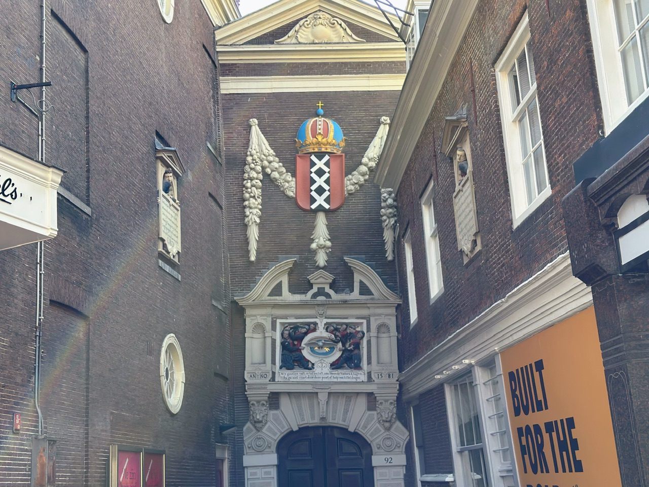 アムステルダムの紋章だそうですが、×印の意味には諸説あり水害、火災、疫病の3つの災難を表す、またはスコットランド旗と同じく、守護神の聖アンドリュー(アンドレ)の十字架を指すといわれていますが、本当のところはよくわからないそうです。