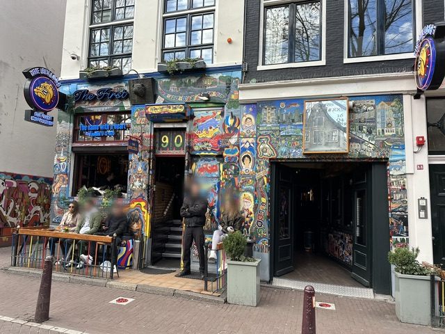 ロッテルダムでも繁華街に行けばきっとあるはずですが、アムステルダムでは急に、ブルドッグの看板が目につき始めました。Coffeeshopとあるので地場のコーヒーチェーン店かと思いましたが、とある1軒で壁画がとても格好よかったので思わずカメラを向けると、全身黒づくめで腕を組み仁王立ちしたスタッフらしき人物がこちらを凝視してきました。
