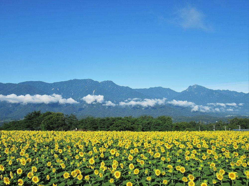 開花状況とお天気と相談しながら、熱中症対策をしっかりとして、明野のひまわりを見に行きませんか。