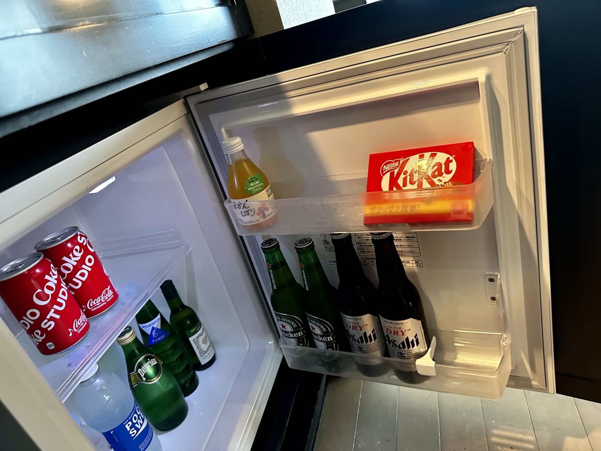 下の冷蔵庫や収納庫に入っているドリンクやお菓子は有料です。