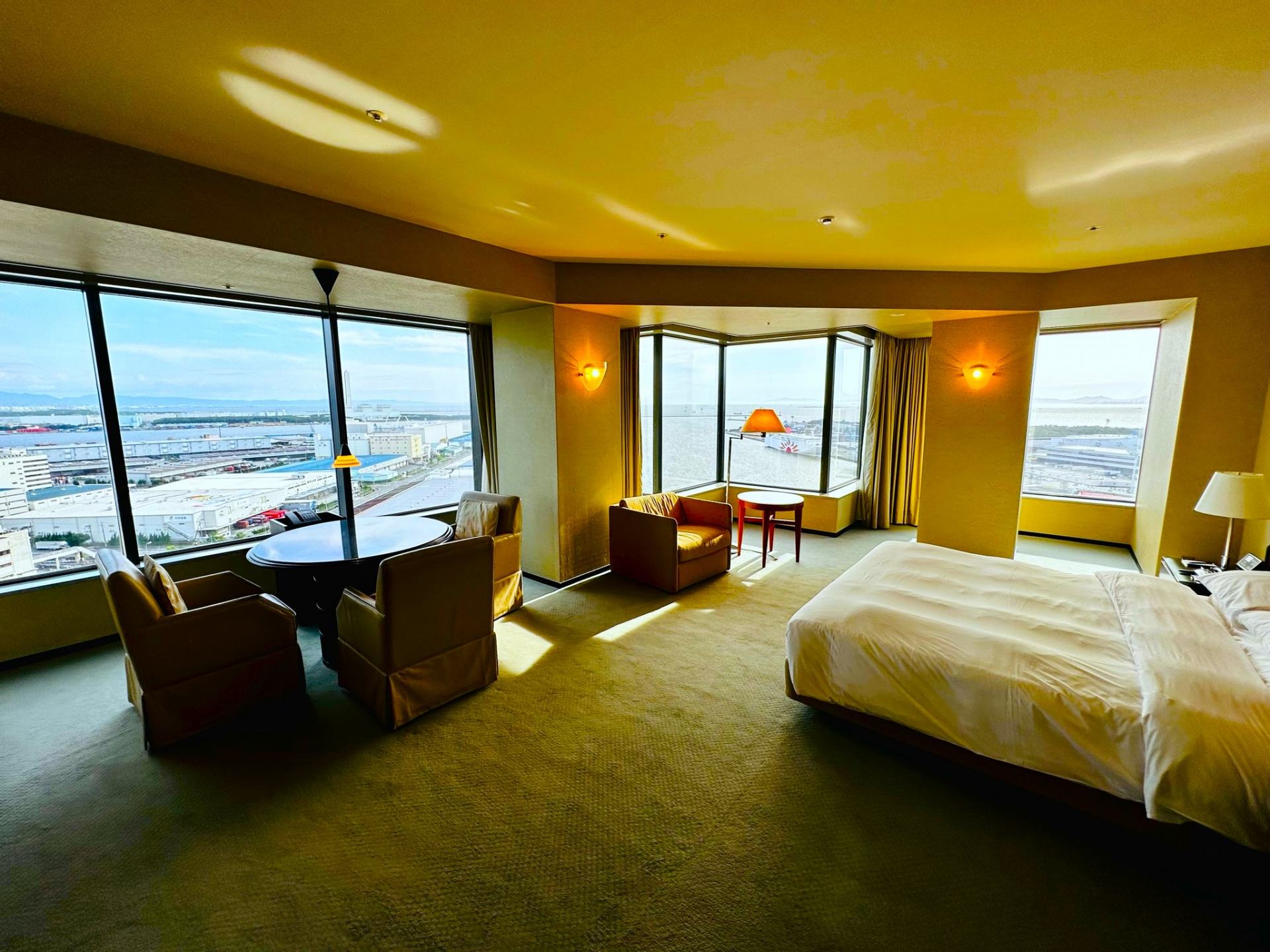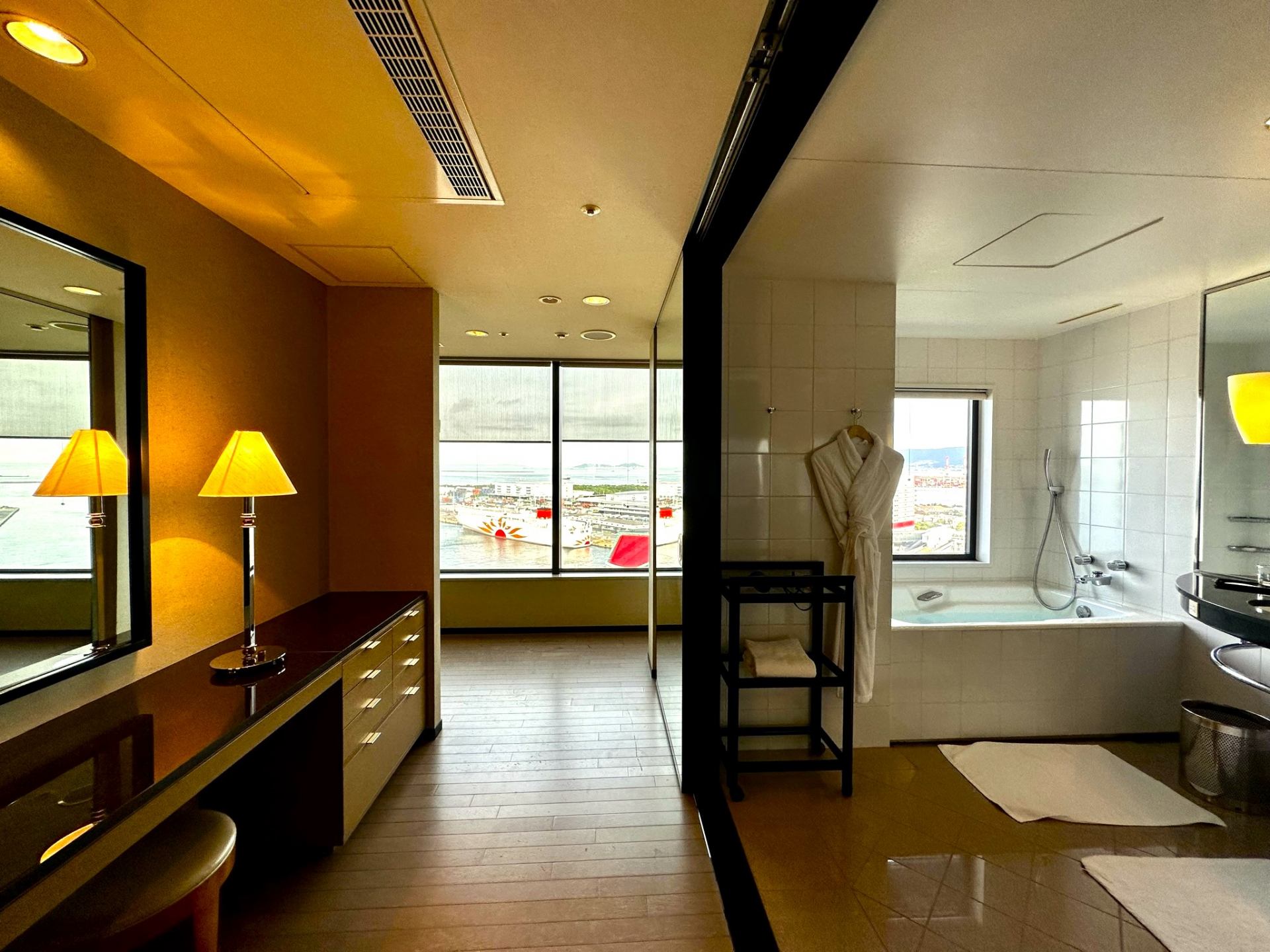 朝になると、大阪湾も沢山の船が行き来します。そんな光景も部屋から見えるので、船好きさんには、嬉しいお部屋です。さんふらわあが大好きな筆者もワクワクしどうしでした。