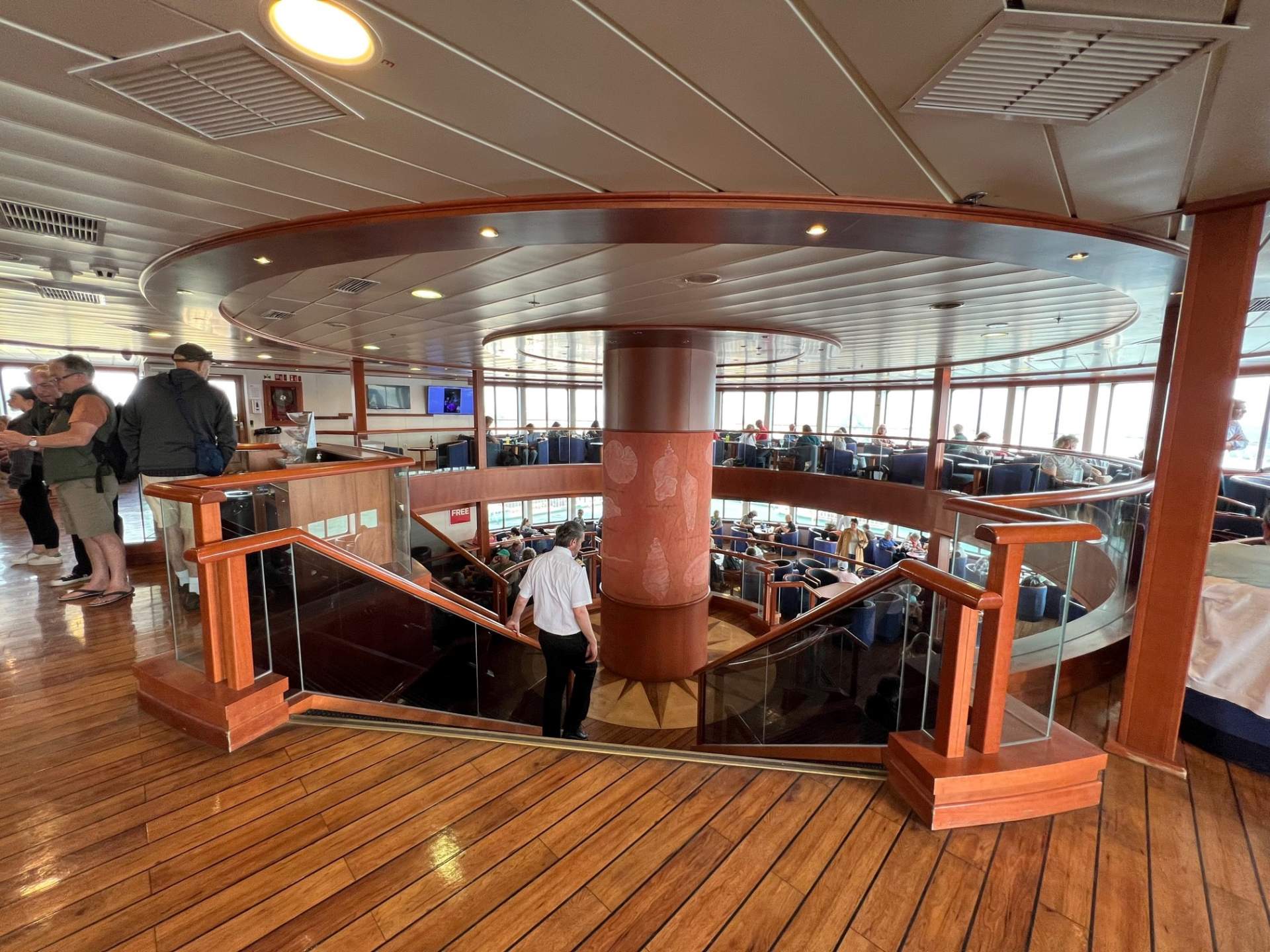 さぁ、乗船です。4時間の船旅って結構長いなぁ、なんて思いますよね。これが、びっくりするほど快適なんです。まずフェリーが思いのほか広くて、清潔です。食堂も売店もあり、海を見ながらのんびりできるラウンジもあり、足を延ばせる客席もあり、外のテラスもあります。飛行機や電車で4時間だと窮屈ですが、広い船内でご飯を食べたり、広々としたラウンジで海を見ながらまったり飲んだりすると、4時間なんて結構あっという間です。さらに行きは出発時にイギリスの名所である白い断崖「セブン・シスターズ」が見えて、絶景でした。食堂のクオリティは普通ですが、フランス・ワインやチーズのおつまみなどが売っていたり、店員さんがフランス語で話していたりして、早速旅情を感じます。