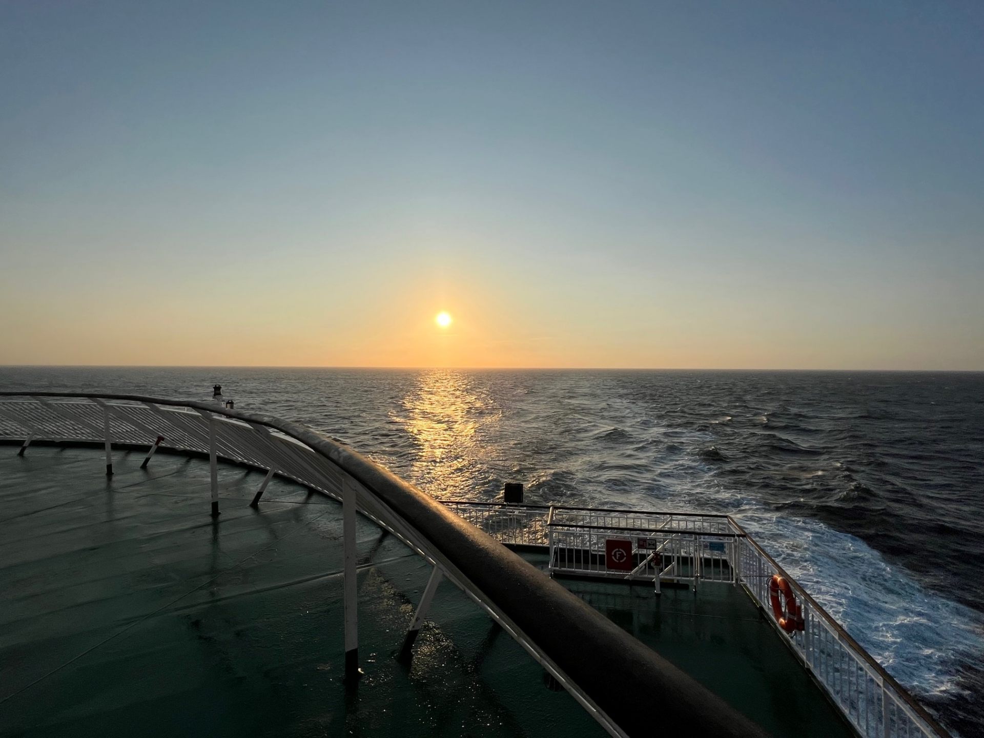 ニューヘイブン・タウン駅からフェリーポートはほぼ隣接していて、徒歩3分といったところでしょうか。スーツケースがあるので遠かったら面倒だなと思ったら案外近かったです。DFDSという会社がフェリーを運営しており、日によって出発時間が異なりますが、だいたい午前中/夕方/夜中の3便を運行しています。筆者は17時の便に乗り込みました。チェックインは45分前が締め切りです。フェリー・ポートはバス・ターミナルのような雰囲気で、カウンターは特に混んでいることもなく、荷物の持ち込み制限も特にないので、飛行機と比べるとかなりリラックスしています。フェリー・ポートはwifiも完備していたので、ホリデー前に乗船ギリギリまで働きたい人にも向いています。(フェリーが出発するとwifiがとぎれとぎれになります)時間になるとみんなでシャトル・バスに乗ってフェリー入口まで向かいます。