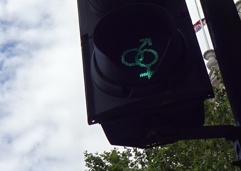約50の歩行者信号がLGBT+(レズビアン、ゲイ、バイセクシュアル、トランスジェンダー、その他の性的マイノリティ)のシンボルに取り替えられ、今もその多くが残っています。