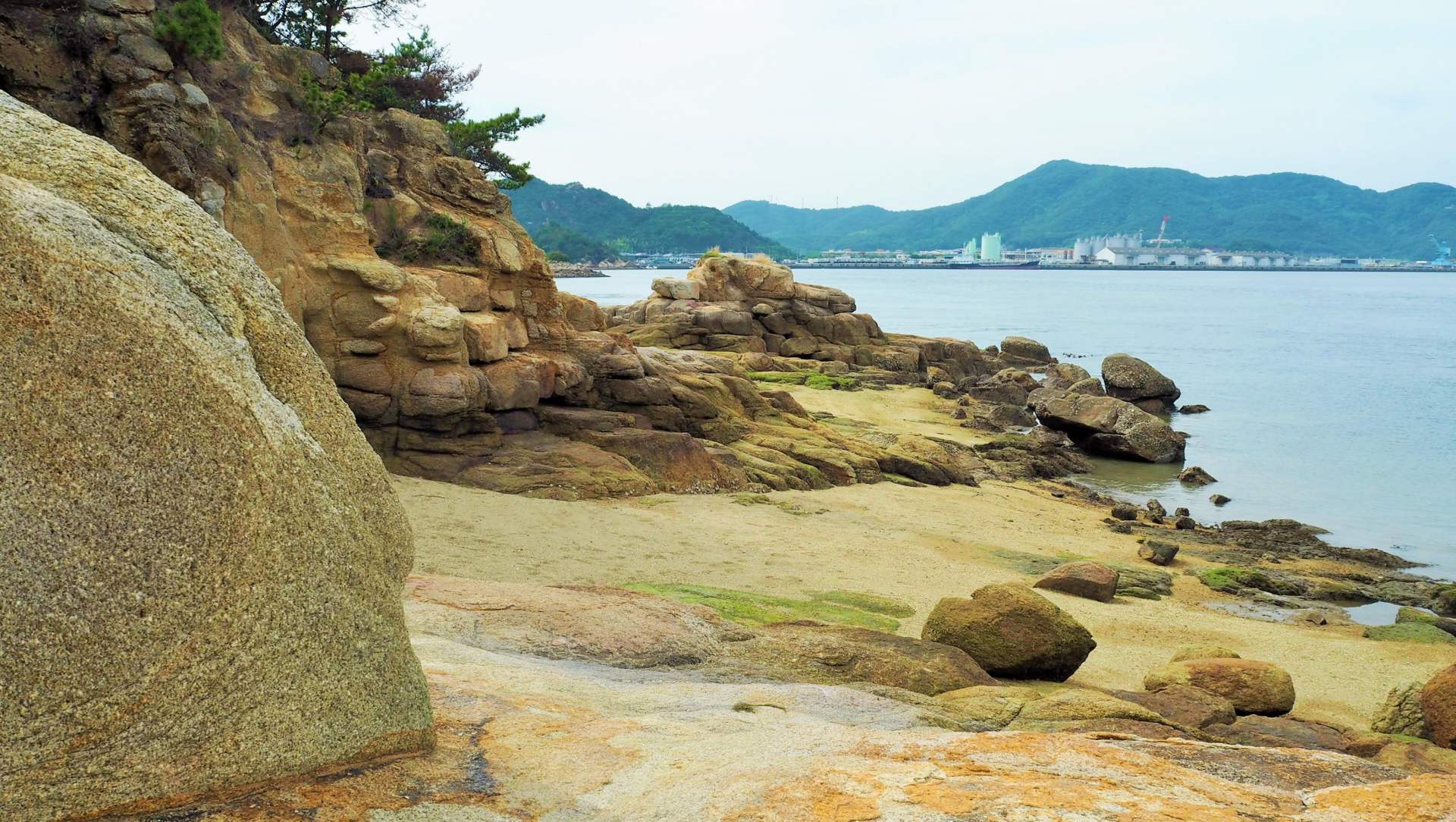 海岸からは、美しい瀬戸内海の島々が堪能できます。牛ヶ首島、屏風島などは泳いで渡れそうな距離です。(遊泳禁止ですが。)この日の出海岸は名前通り、瀬戸内の島々の間から登る日の出が絶景で、初日の出の人気スポットです。