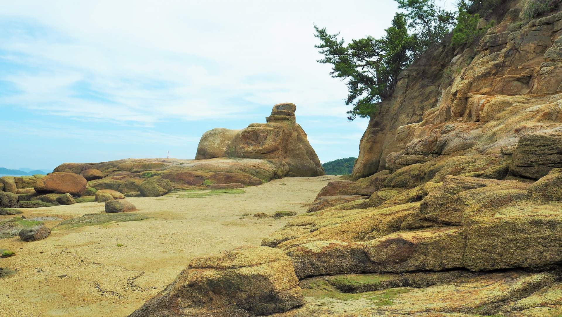 さあ、岩場の方へ行ってみましょう。岩肌がきれいで、磯の香りがただよっています。