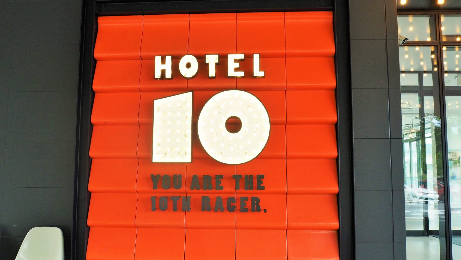 ホテル入口のロゴがおしゃれです。