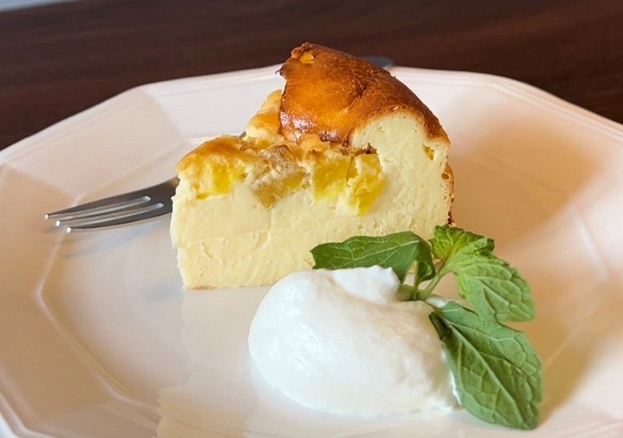 人気のパイナップルチーズケーキ(税込300円)。手作りスイーツも、3~4種類から選べます。