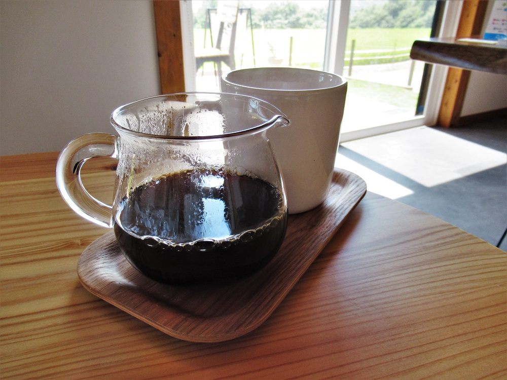 たっぷり大きなカップがうれしい自家焙煎のスペシャリティーコーヒー(税込450円)は、ご主人がていねいにハンドドリップで淹れてくれます。とても気さくな方で、豆の種類や焙煎度など、好みに合ったコーヒーを一緒に選んでくれますよ。