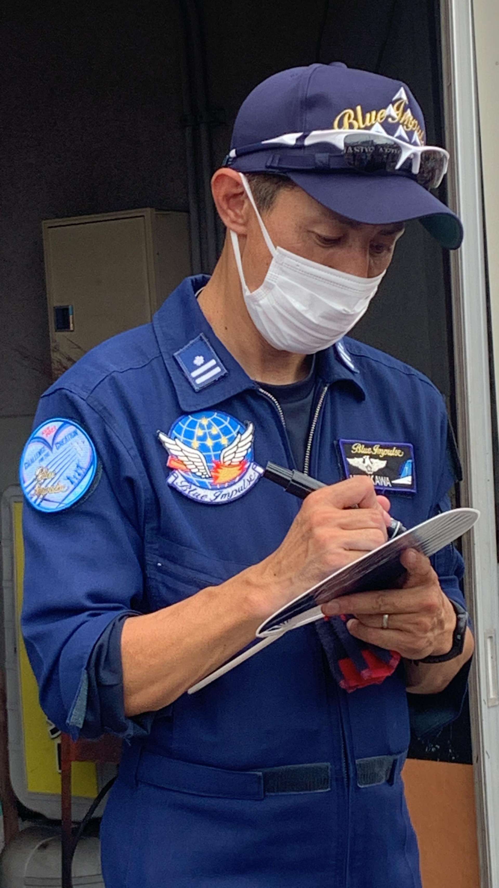 ブルーインパルス公式パンフレットや雑誌、カレンダーなど、黒澤氏が撮影される写真はブルーインパルスファンならずとも、見られたことはあるのではと思います。実際にブルーインパルスに搭乗し、空撮もされます。もうお1人、同じく空撮される黒澤さんのお弟子さんの美しい女性にもお会いしました。そんな貴重で素敵な出会いもこの街ではあります。 (写真掲載はご本人にご了承いただきました。)