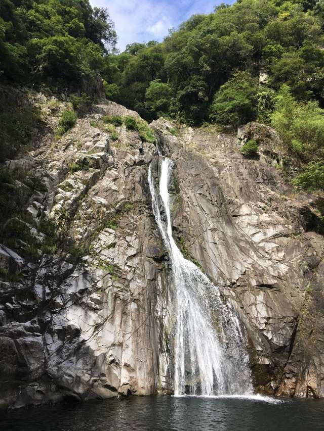 新神戸駅の1階では観光客に混ざって、ザックやトレッキングポールを持った本格的な装備の方や町の観光ついでにふらっと訪れた感じの軽装な人を見かけました。六甲山では縦走や最高峰を目指す登山をしなくても、駅から15分程の場所に布引の滝のひとつ、「雄滝」があり、ここを訪れるだけでも十分自然を感じることができます。落差43mの高さから水が流れ落ちる様子は市街地からわずか数十分の場所とは思えないほど圧巻です。道中は六甲山系から湧いた透き通った水が川となり清涼感抜群! 特に春から秋にかけて多くのハイカーでにぎわいます。
