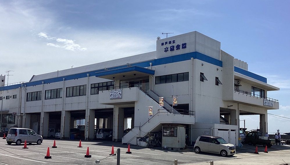 JR垂水駅(山陽垂水駅)から南に約4分。潮風が吹き抜ける垂水漁港の海沿いに建つのが「神戸市立水産会館」です。海からの潮風もあり、お世辞にも写真映えするきれいな建物とはいえませんが、知る人ぞ知るのか、筆者が訪れた平日のランチ時は駐車場に多くの車が停まっていました。