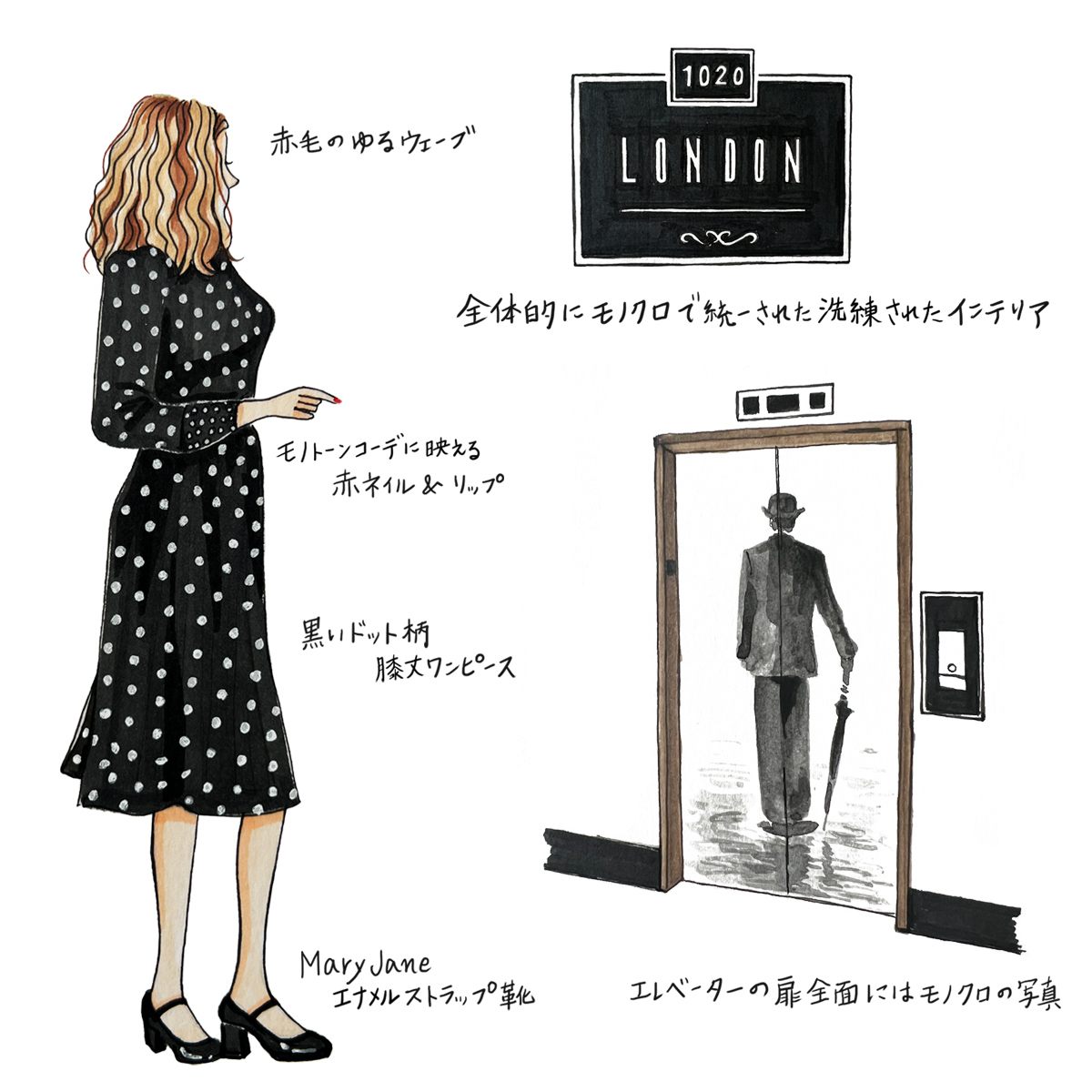 皆さまこんにちは!私は仕事柄日常生活ではあまり行く事のないスポットやお洒落なホテルに行く機会が多くあるので徐々に紹介していきたいと思います。今回はハリウッドの西側、ビバリーヒルズに接してるWest Hollywood(WeHo ウィホー)にあるThe London WeHo Hotelとそこで見かけた素敵な女性を描いてみました。