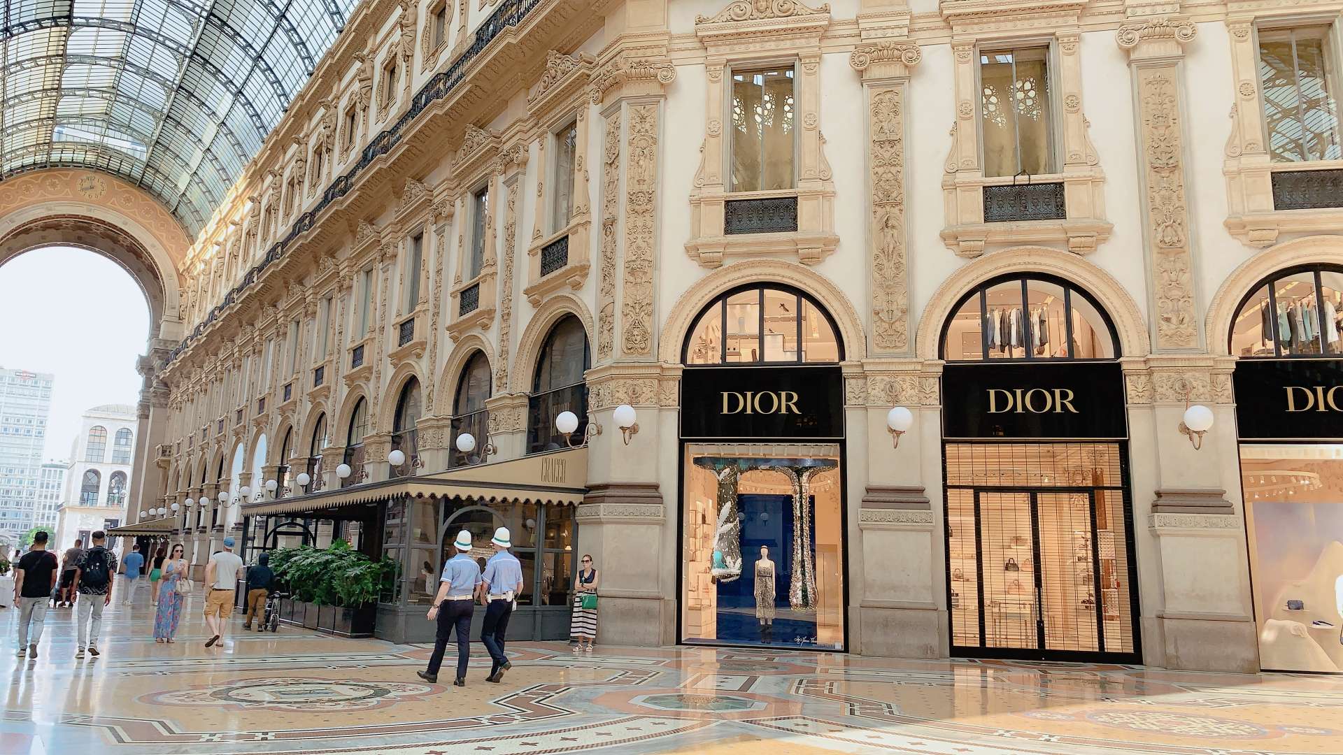 プラダの本店をはじめとしたハイブランドが並ぶ高級アーケードです。