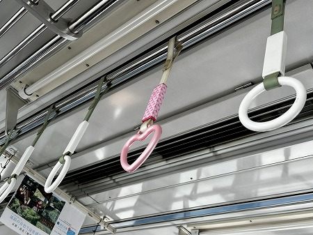 ハートのつり革は、叡山電車のつり革の中に、一個だけのレアアイテム。ハートのつり革を見つけると幸せをつかめる、また恋が叶うと言われています。