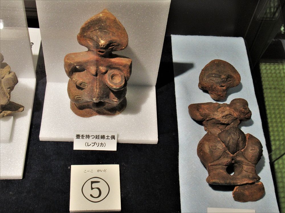 隣には、立ち姿のレプリカがありました。縄文時代中期~後期の「ポーズ型土偶(しぐさや行為が見てとれる格好をした土偶)」のなかでも、壺を持つ土偶は珍しいそうです。