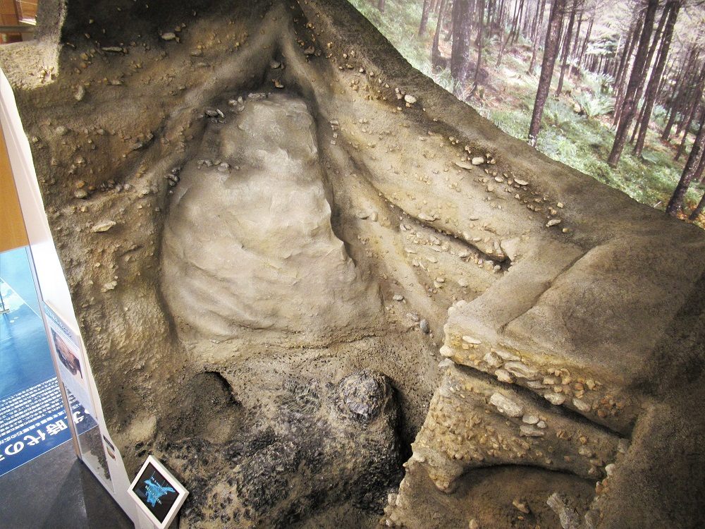 でもその前に、トップの写真、なんだと思いますか? 「黒曜石採掘抗ジオラマ」です。