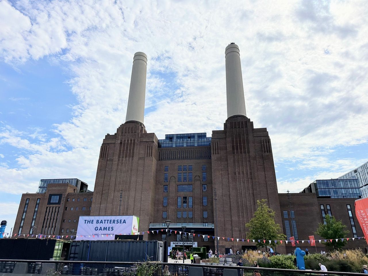 マンションの下が韓国系スーパーや飲食店、眼鏡店などになっている街路「Electric Boulevard」を通り抜けると、イギリスの指定建造物に分類されている「バタシー発電所(Battersea Power Station)」のお目見えです。